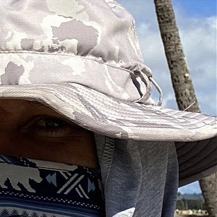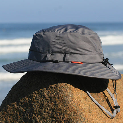 The Condor was designed based on feedback from our Shelta family, who desired a style that could provide both sun protection and comfort in hot conditions. This rendition of our classic sunhat features a deeper crown for air flow and a wider, downward-angled brim for increased UV protection. A full vapor barrier liner prevents the fabric from touching your scalp, while allowing air flow through the laser cut venting holes and breathable material. Unlike other models, the Condor does not have a stash pocket, making it even lighter. However, it still maintains its amphibious nature with the No Sag headband, No Flop®️ brim technology, and the ability to float on water, making it perfect for activities such as boating, gardening, or strolling on the beach.
